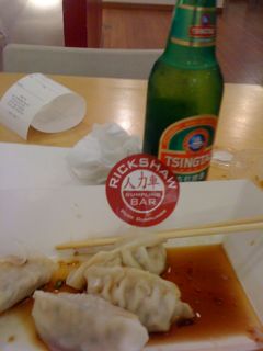 这是一家叫人力车的dumpling bar 这是一家叫人力车的dumpling bar. 这种专门给老外吃的店中国人会觉得不划算,六个饺子一瓶青岛就要10块多,中国城的店五块就有16个而且味道要正宗得多,但对中餐摆脱低端廉价的形象打入主流社会却是很好的尝试。 相关文章: 东村和西村 至少300名联合国工作人员在海地遇难 新泽西篮网今天搞了个中华之夜 lets travel back in time