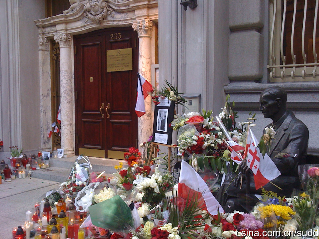 纽约Madison Avenue的波兰领事馆门口摆满了鲜花和蜡烛。波兰总统飞机失事的Katyn Woods是70年前两万多名波兰军人被苏联秘密屠杀的地方,而他正是要去参加纪念这些遇害军人的一个活动。苏联一直拒绝正面承认这一事件,近来态度才有所松动。波兰前总统Aleksander Kwasniewski说:It is a damned place.